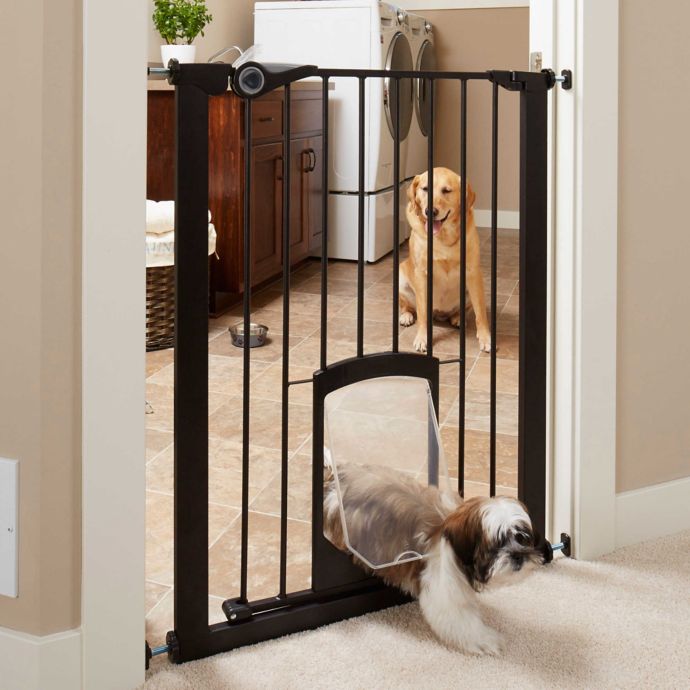 Mypet Passage 36 Inch Tall Pet Gate With Small Pet Door In Matte Bronze Bed Bath Beyond